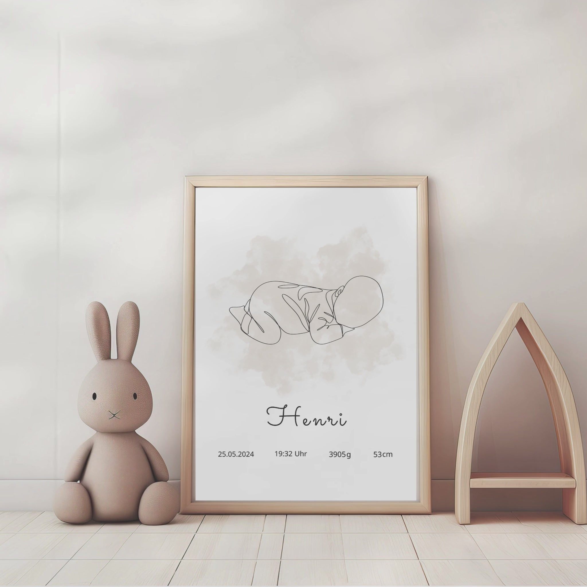 Geburtsposter "Baby Artline mit Wolke"